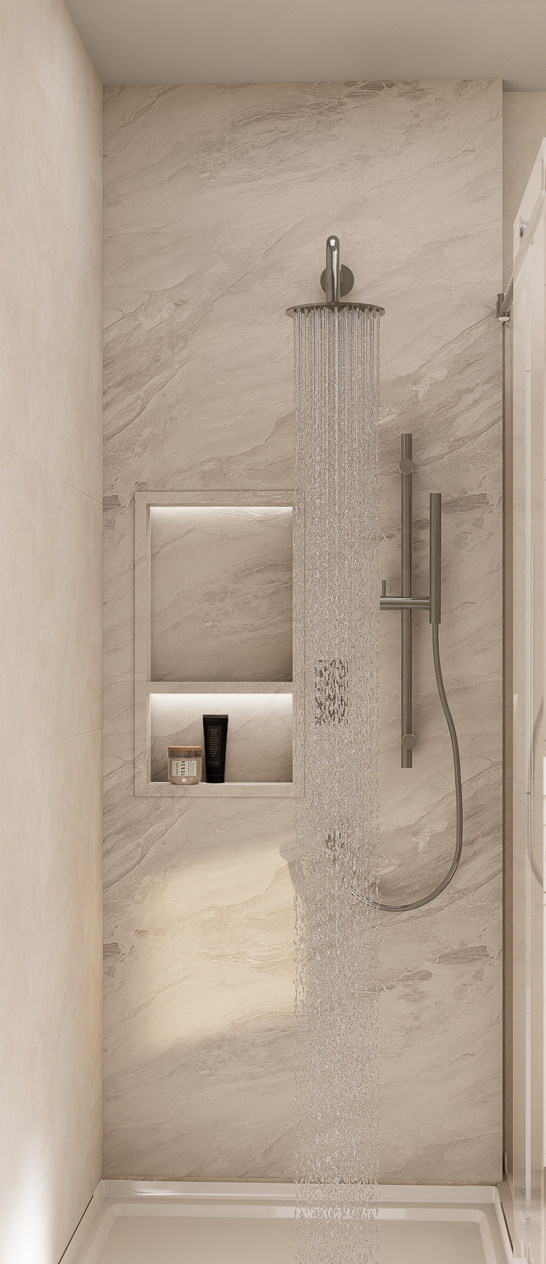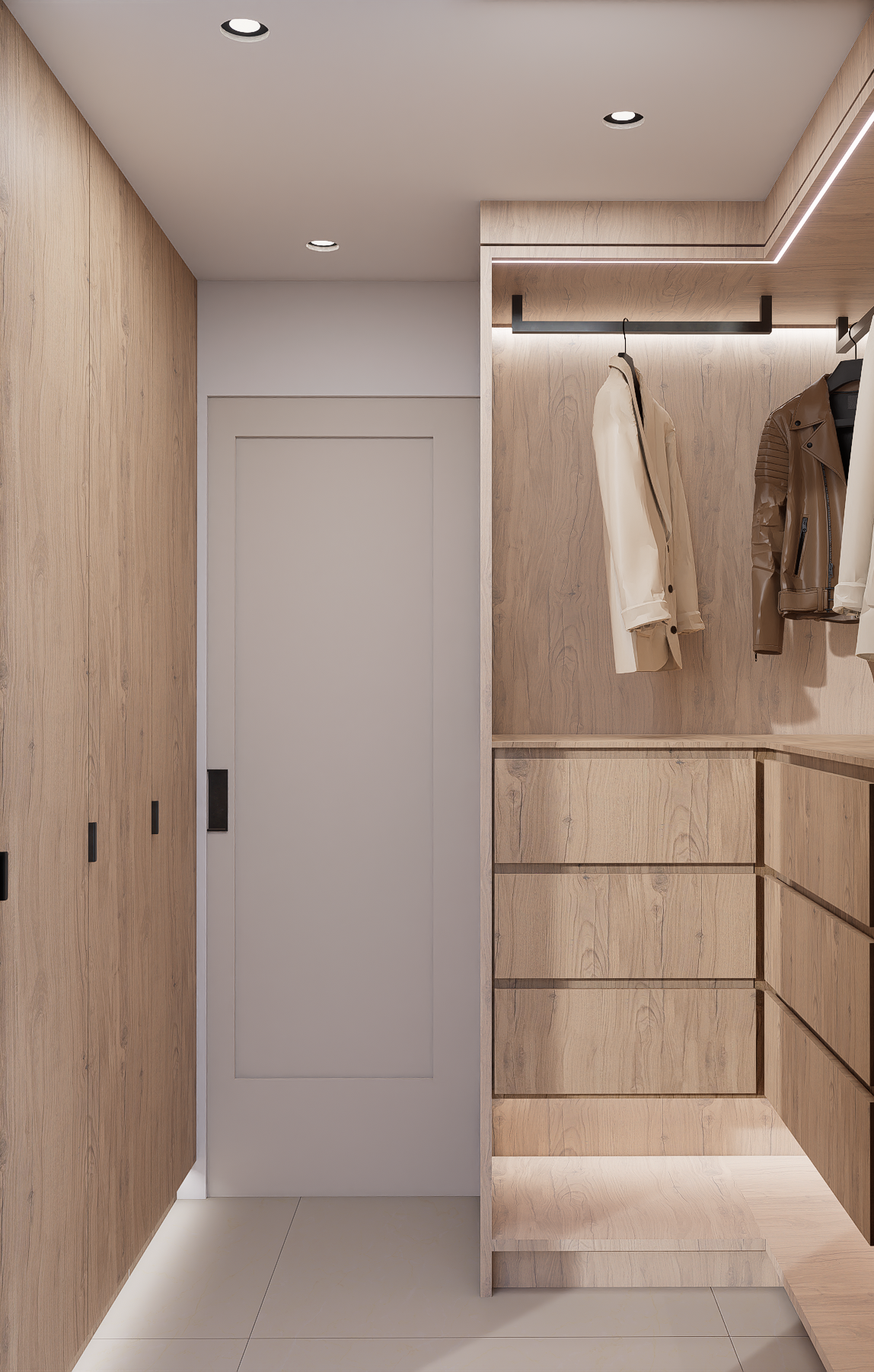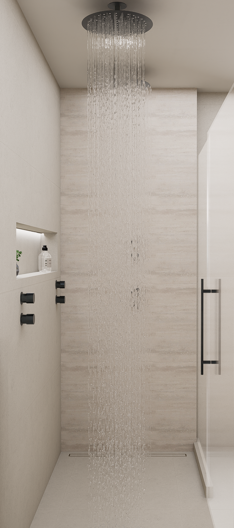 Dans cette résidence située à Laval, j’ai repensé deux salles de bain ainsi que deux walk-ins dans un esprit profondément minimaliste et apaisant, inspiré du style Japandi. L’objectif était de créer des espaces fluides, ouverts et fonctionnels, où chaque élément trouve sa place avec intention et sobriété. Les matériaux naturels et les tons terreux ont guidé toute la conception : bois pâle, pierre texturée, céramique mate, linéaires épurés. Le tout forme une palette douce et cohérente, mettant en valeur la beauté des textures plutôt que la multiplication des éléments décoratifs. L’aménagement des deux walk-ins a été pensé dans la continuité de cette approche minimalisme fonctionnel, rangements dissimulés, circulation fluide et lumière douce. Le tout forme un ensemble harmonieux, équilibré entre esthétisme et usage quotidien. La lumière naturelle, amplifiée par un éclairage indirect bien maîtrisé, renforce l’ambiance sereine, presque méditative. Chaque pièce invite au calme et à la simplicité, tout en répondant aux besoins pratiques de la vie moderne. Ce projet incarne pleinement ma démarche de design : créer des lieux à la fois élégants, simples et profondément ancrés dans le confort sensoriel.